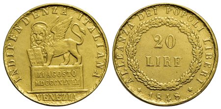 VENEZIA - Governo Provvisorio (1848-1849) - 20 Lire - 1848 - AU RR Pag. 176; Mont. 89 Incastonatura abilmente rimossa