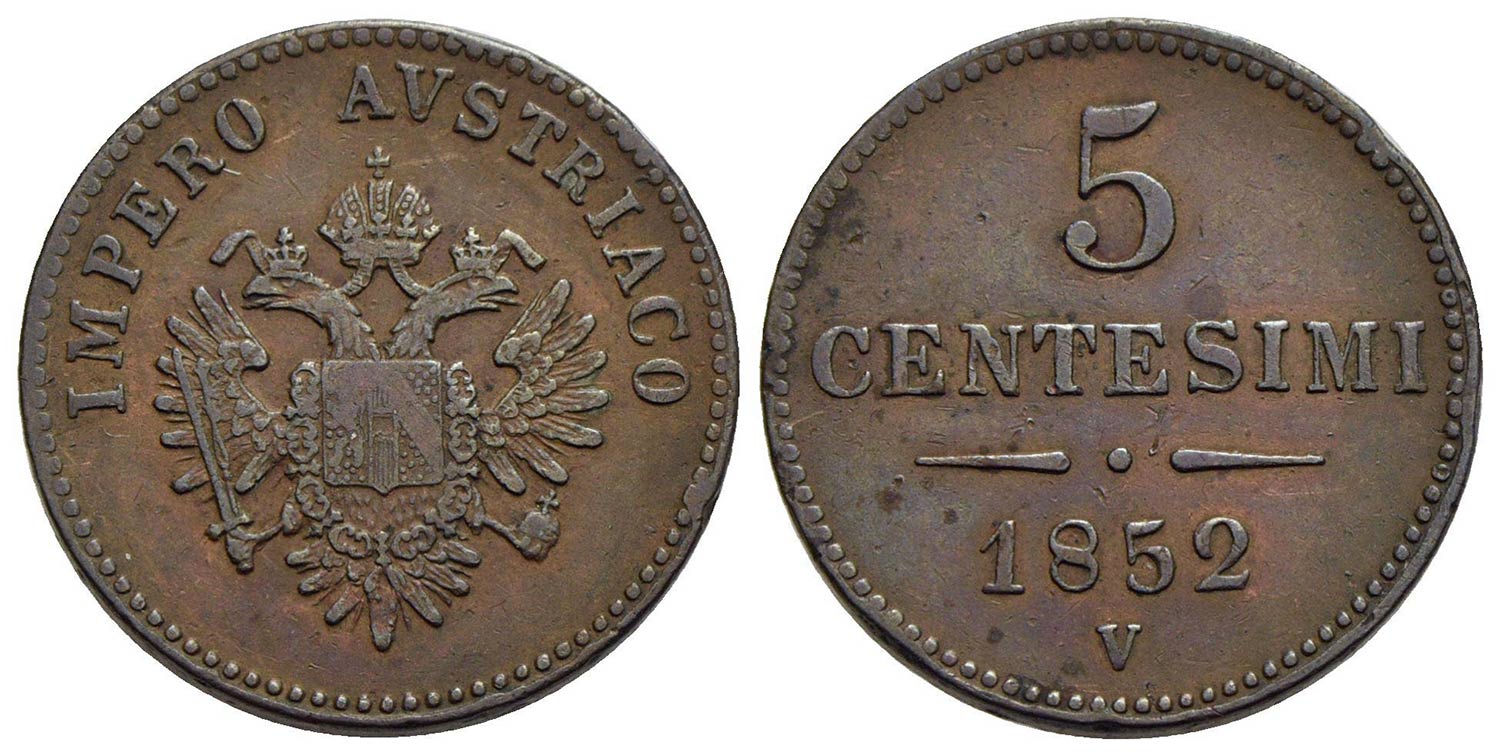 VENEZIA - Francesco Giuseppe I d'Asburgo-Lorena (1848-1866) - 5 Centesimi - 1852 - CU Pag. 259; Mont. 310 Aquila