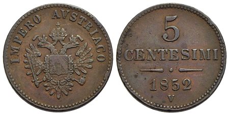 VENEZIA - Francesco Giuseppe I d'Asburgo-Lorena (1848-1866) - 5 Centesimi - 1852 - CU Pag. 259; Mont