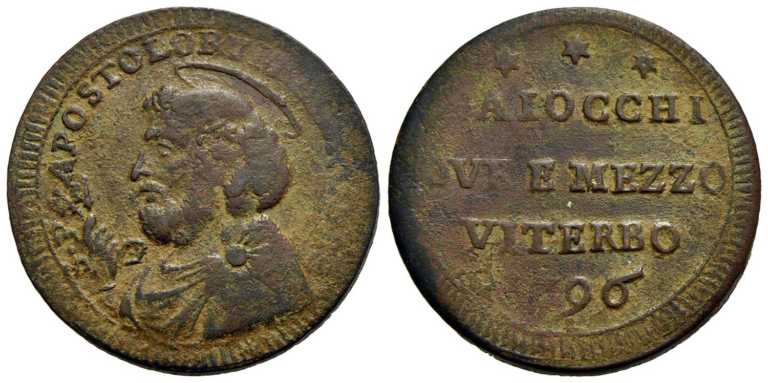 VITERBO - Pio VI (1775-1799) - Sampietrino - 1796 - CU R Ser. 678; Munt. 426