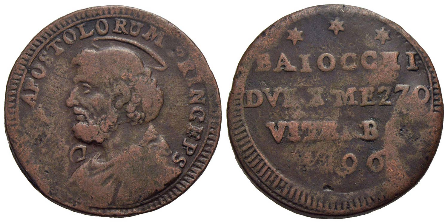 VITERBO - Pio VI (1775-1799) - Sampietrino - 1796 - CU R Ser. 678; Munt. 426<br>qBB
