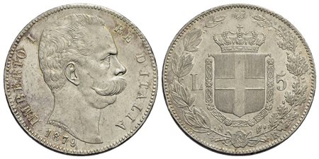 Umberto I (1878-1900) - 5 Lire - 1879 - AG Pag. 590; Mont. 33<br>qFDC/FDC