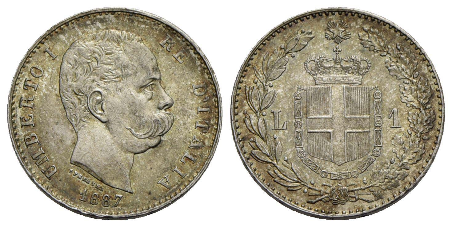 Umberto I (1878-1900) - Lira - 1887 - AG Pag. 604; Mont. 49 Bella patina<br>FDC