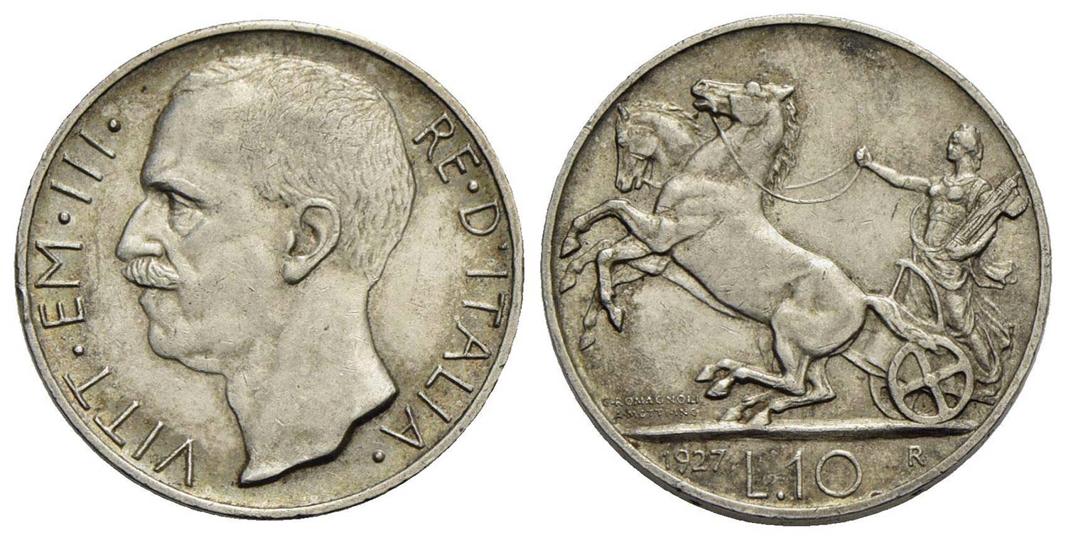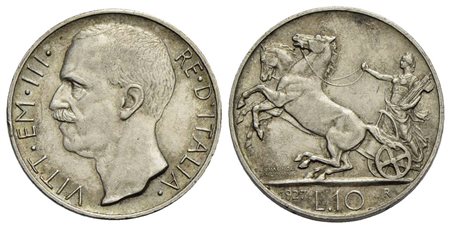Vittorio Emanuele III (1900-1943) - 10 Lire - 1927 ** Biga - AG Pag. 692a; Mont. 90 Colpetto<br>qSPL