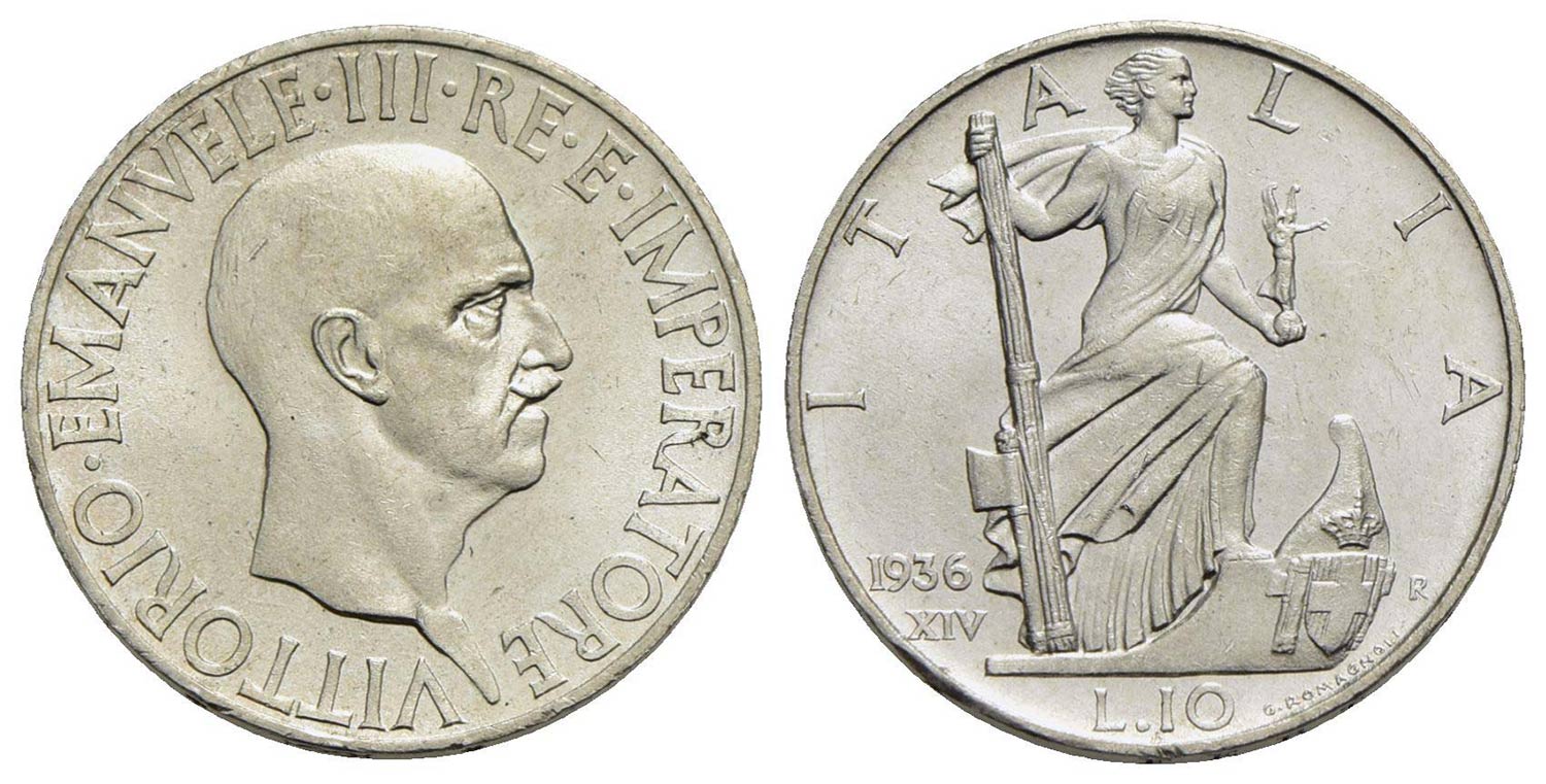 Vittorio Emanuele III (1900-1943) - 10 Lire - 1936 XIV Impero - AG Pag. 700; Mont. 101 Insignificant