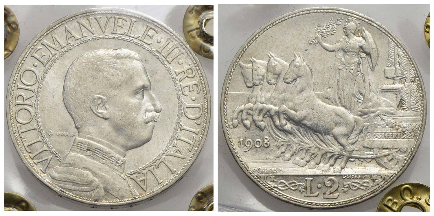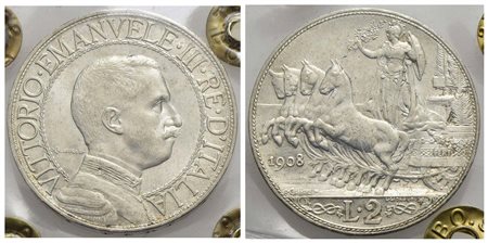 Vittorio Emanuele III (1900-1943) - 2 Lire - 1908 Quadriga veloce - AG Pag. 732; Mont. 147 Periziata Rocco di Torrepadula