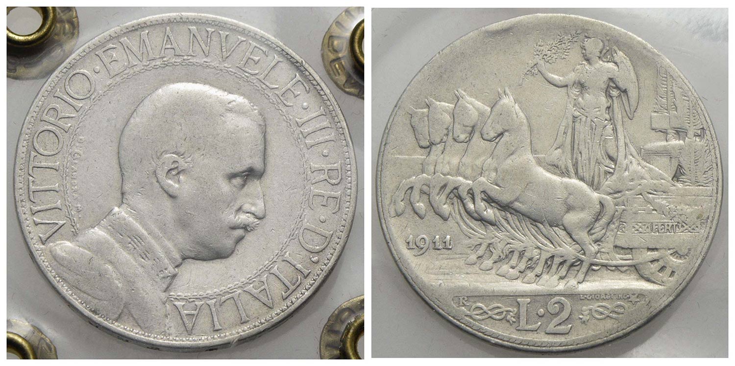 Vittorio Emanuele III (1900-1943) - 2 Lire - 1911 Quadriga veloce - AG RR Pag. 734; Mont. 149 Periziata