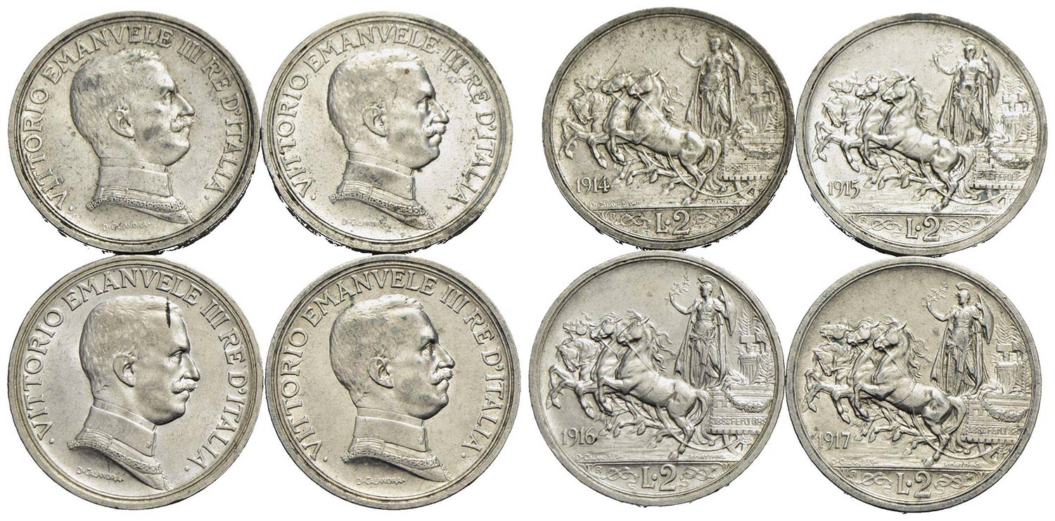 Vittorio Emanuele III (1900-1943) - 2 Lire - 1914÷17 Quadriga Briosa - AG R Pag. 737÷740; Mont. 154÷157