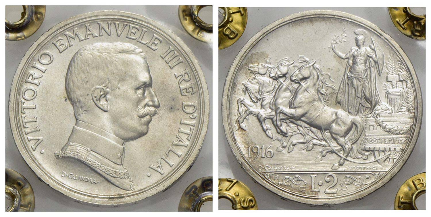 Vittorio Emanuele III (1900-1943) - 2 Lire - 1916 Quadriga briosa - AG Pag. 739; Mont. 156 Periziata Rocco di Torrepadula con la nota "Eccezionale"