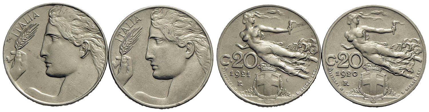 Vittorio Emanuele III (1900-1943) - 20 Centesimi - 1920 e 21 - NI Lotto di due monete<br>bello SPL