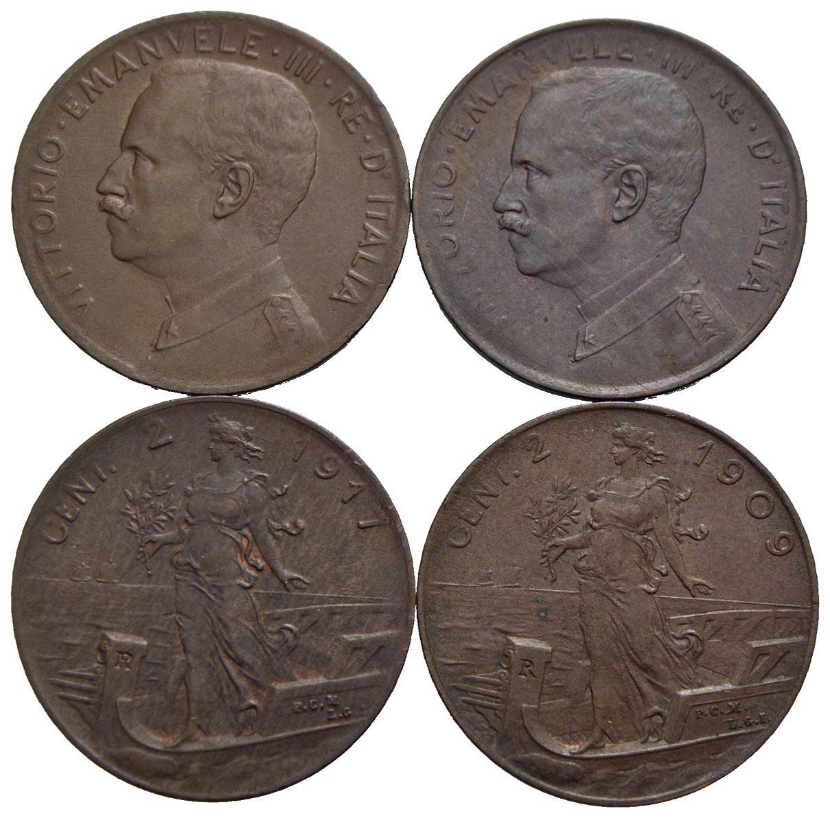 Vittorio Emanuele III (1900-1943) - 2 Centesimi - 1909-11-15-17 Prora - CU Lotto di 4 monete
