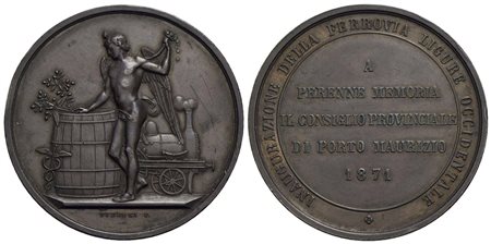 SAVOIA - Vittorio Emanuele II Re d'Italia (1861-1878) - Medaglia - 1871 - Ferrovia Ligure Occidentale - Genio alato in piedi volto a s. - R/ Scritta Opus: Pieroni Ø: 50 mm. - (AE g. 67,9) R
