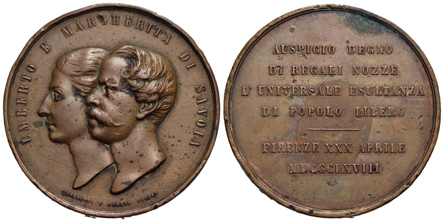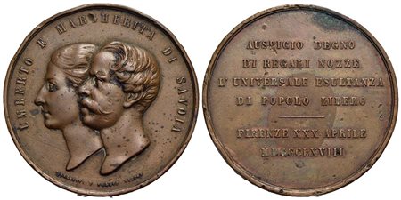 SAVOIA - Umberto I (1878-1900) - Medaglia - 1868 - Nozze - Busti del Re e della Regina affiancati a