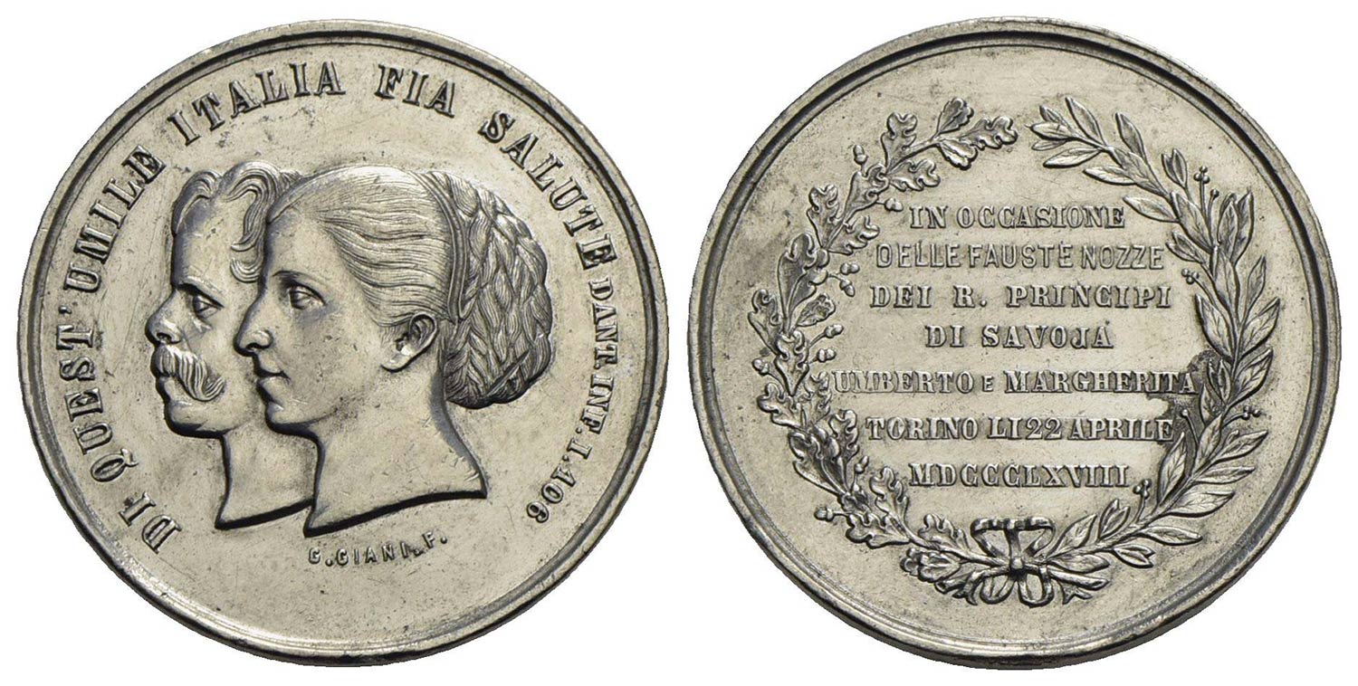 SAVOIA - Umberto I (1878-1900) - Medaglia - 1868 - Nozze - Busti affiancati a s. - R/ Scritta Opus: Ciani Ø: 44 mm. - (MB g. 26,4)