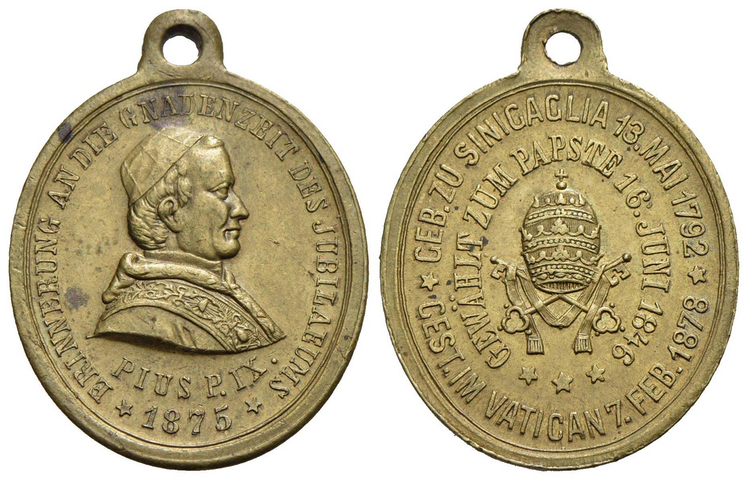 PAPALI - Pio IX (1866-1878) - Medaglia - 1875 - In memoria del Giubileo - Busto a d. - R/ Stemma e s