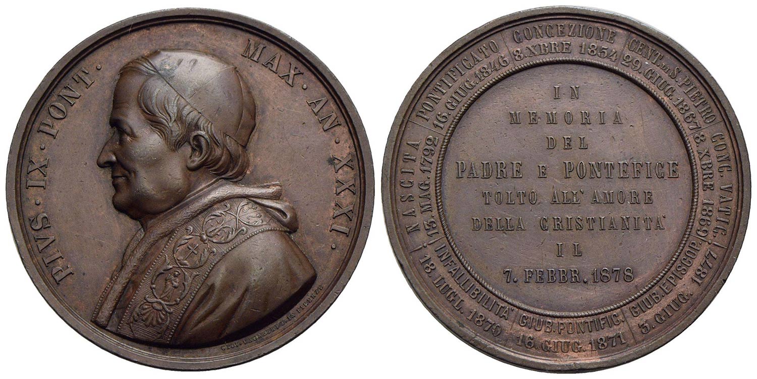 PAPALI - Pio IX (1866-1878) - Medaglia - A. XXXI - In memoria - Busto a s. - R/ Scritte circolari e nel campo Opus: Vagnetti Ø: 51 mm. - (AE g. 59,9) Bart. PM-4 Segnetti