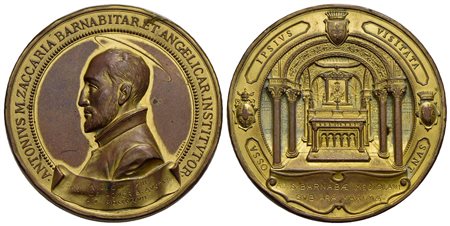 PAPALI - Leone XIII (1878-1903) - Medaglia - 1897 A. XX - Per la canonizzazione di Antonio Maria Zaccaria - Busto a s. - R/ Vista interna della chiesa di S. Barnaba in Milano Opus: Johnson Ø: 46 mm. - (AE dorato g. 55,3) Mod. 283