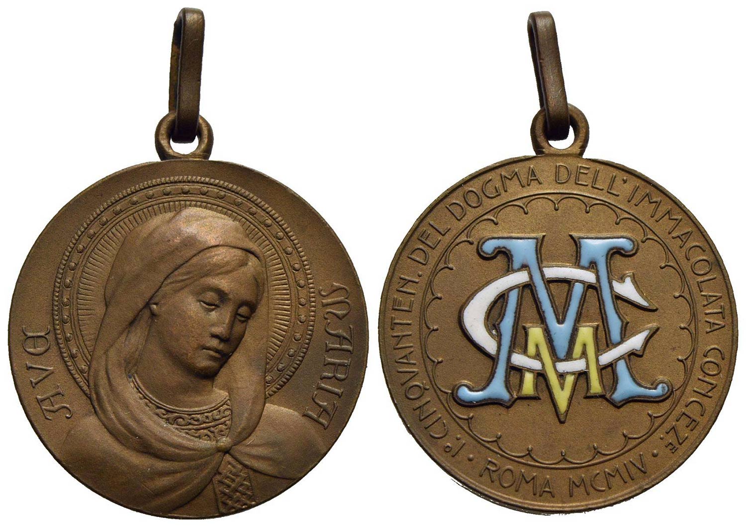 PAPALI - Pio X (1903-1914) - Medaglia - 1904 - 50° Dogma Immacolata - Busto velato a d. - R/ Monogramma con smalti Ø: 26 mm. - (AE g. 8,5)