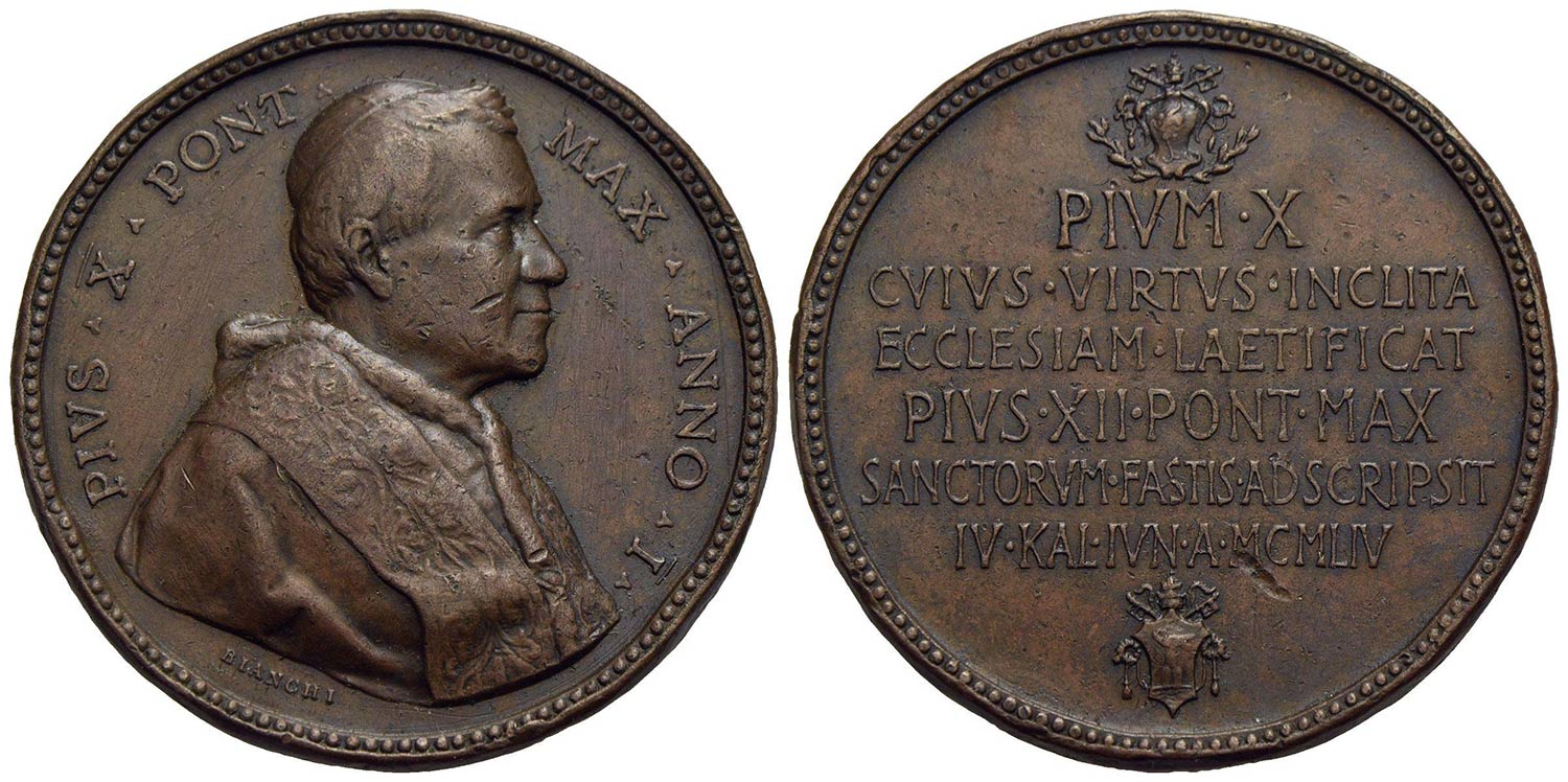 PAPALI - Pio X (1903-1914) - Medaglia - A. I - Canonizzazione - Busto a d. - R/ Scritta Opus: Bianchi Ø: 44 mm. - (AE g. 32,1) Postuma del 1954 Colpo