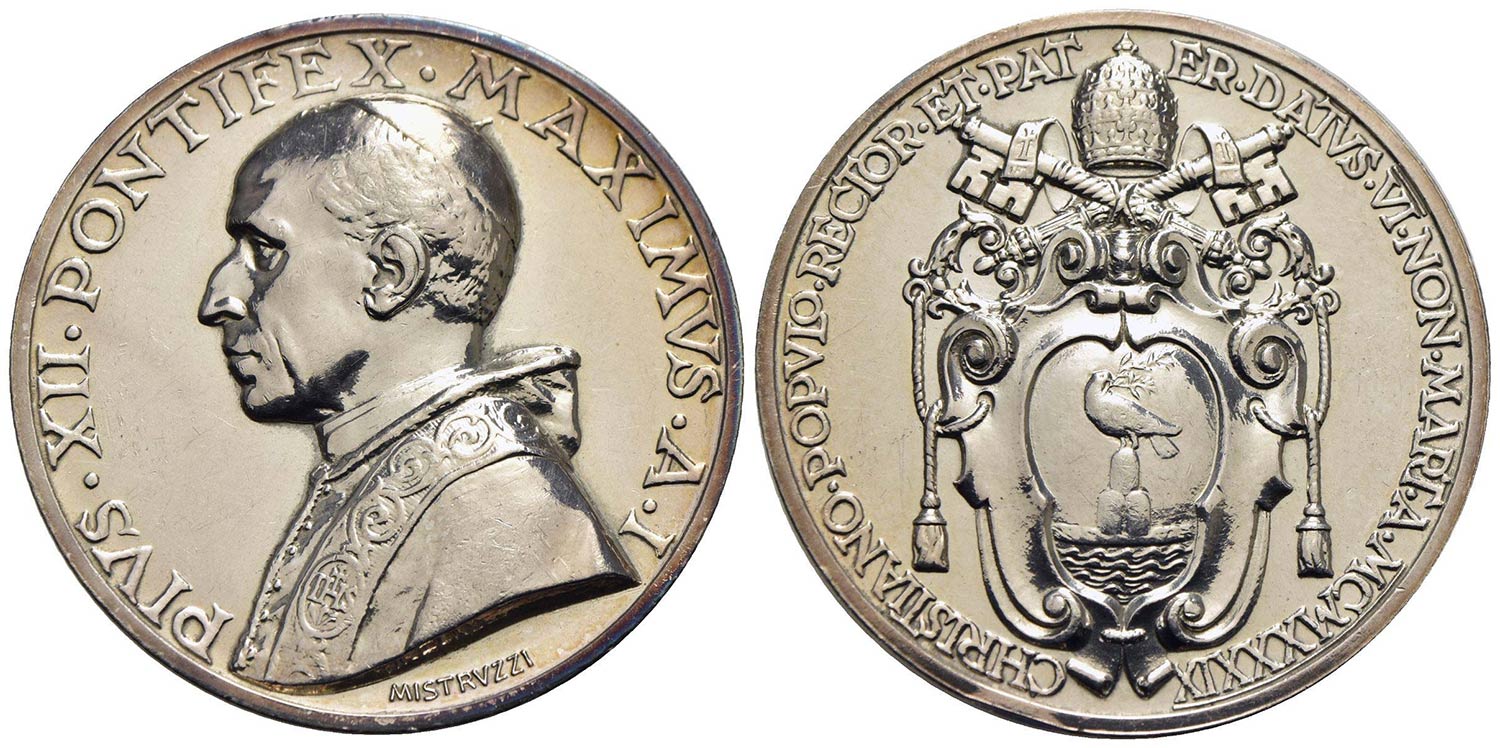 PAPALI - Pio XII (1939-1958) - Medaglia - A. I - (AG g. 39,8) Mont. 21 Pulita<br>SPL