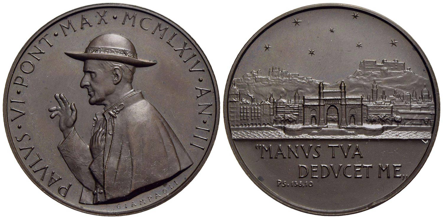 PAPALI - Paolo VI (1963-1978) - Medaglia - 1965 A. III - Visite in Terra Santa-Orvieto-Motecassino -