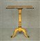 Firmato, datato. Tavolino in legno chiaro, gamba centrale tornita su tre...