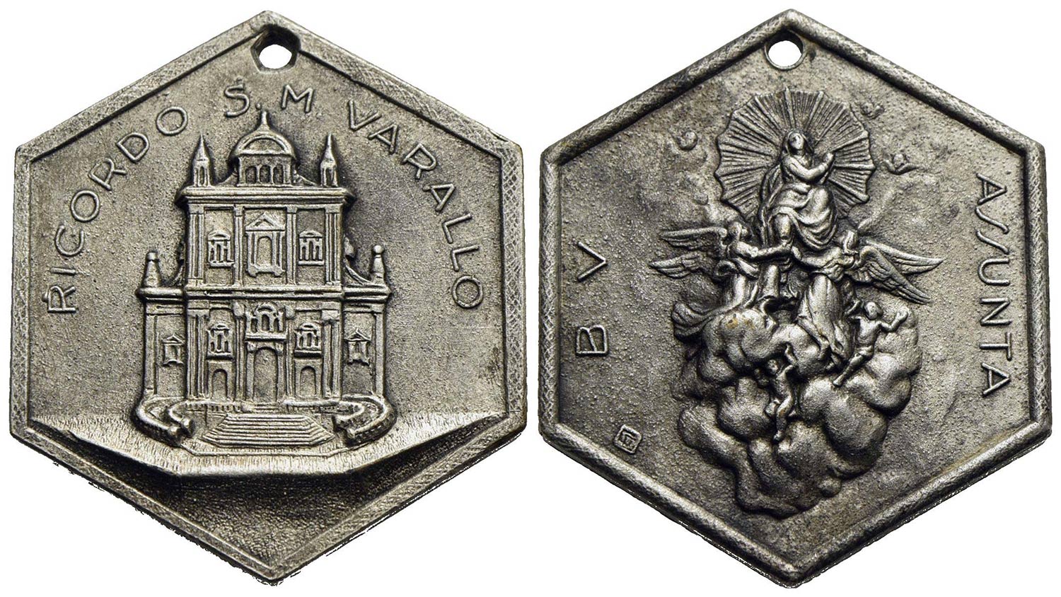 RELIGIOSE - Medaglia - Basilica dell'Assunta - Varallo - Assunzione di Maria - R/ Facciata della Basilica Ø: 35 mm. - MB Esagonale