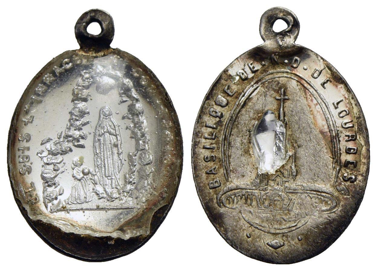 RELIGIOSE - Medaglia - Madonna di Lourdes - La Madonna di Lourdes - R/ La Basilica - MB Ovale mm. 18x12 Con appiccagnolo e resina trasparente non integra
