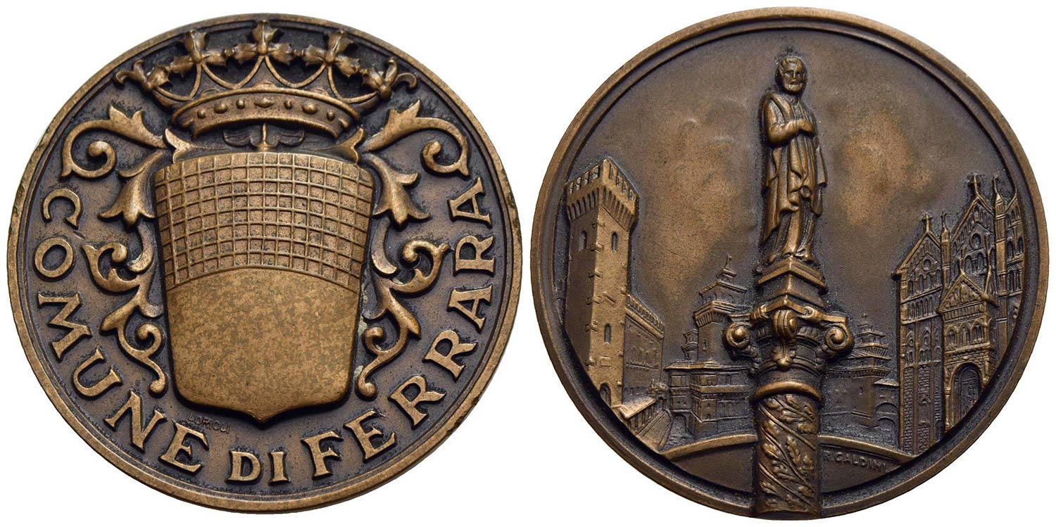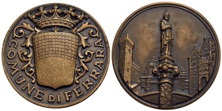 CITTA' - Ferrara - Medaglia - Comune di Ferrara - Stemma coronato - R/ Statua del Savonarola e città