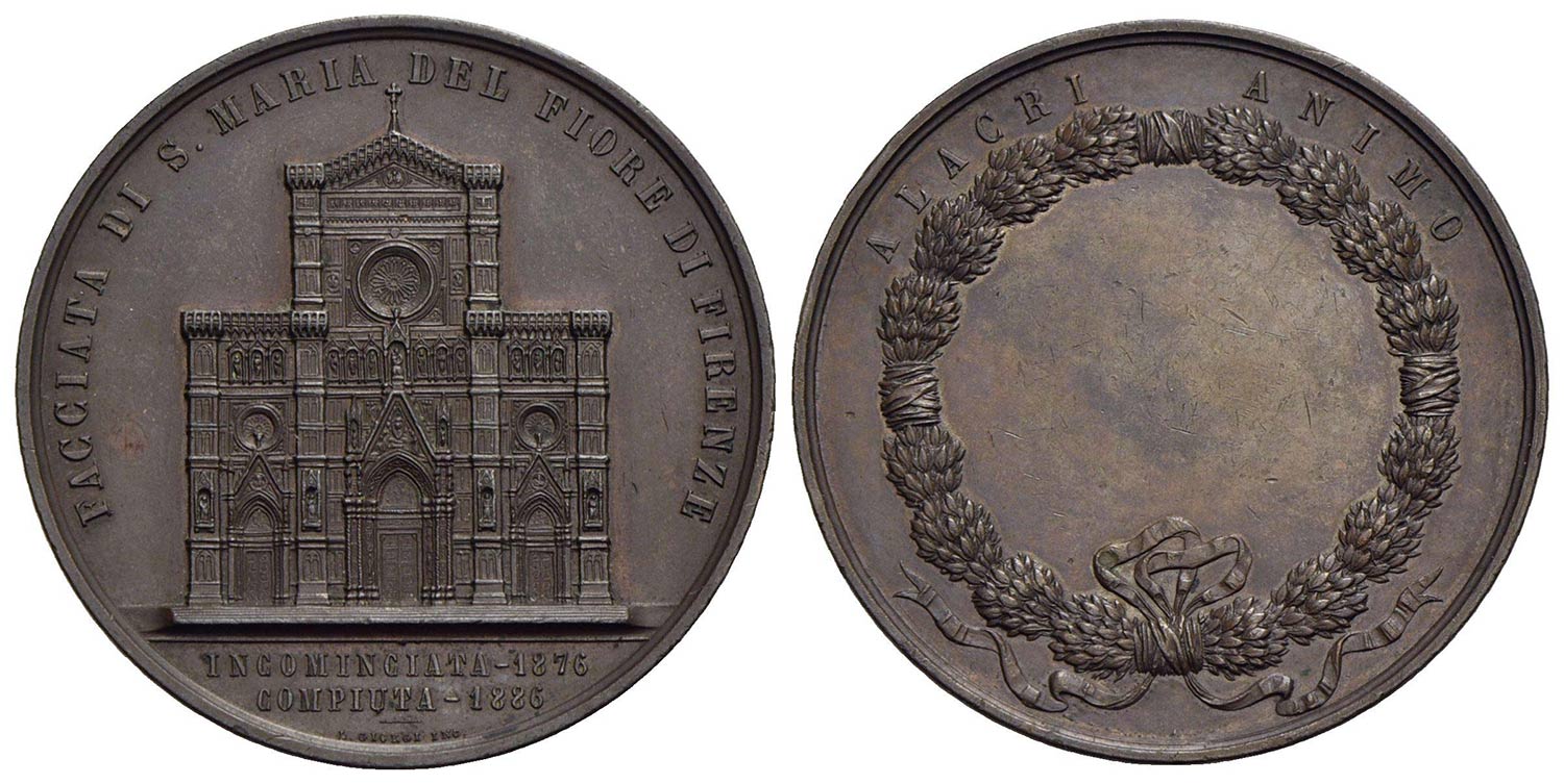 CITTA' - Firenze - Medaglia - 1886 - Compimento chiesa di S. Maria del fiore - Facciata della Chiesa - R/ Corona Opus: Giorgi Ø: 55 mm. - (AE g. 84,7)