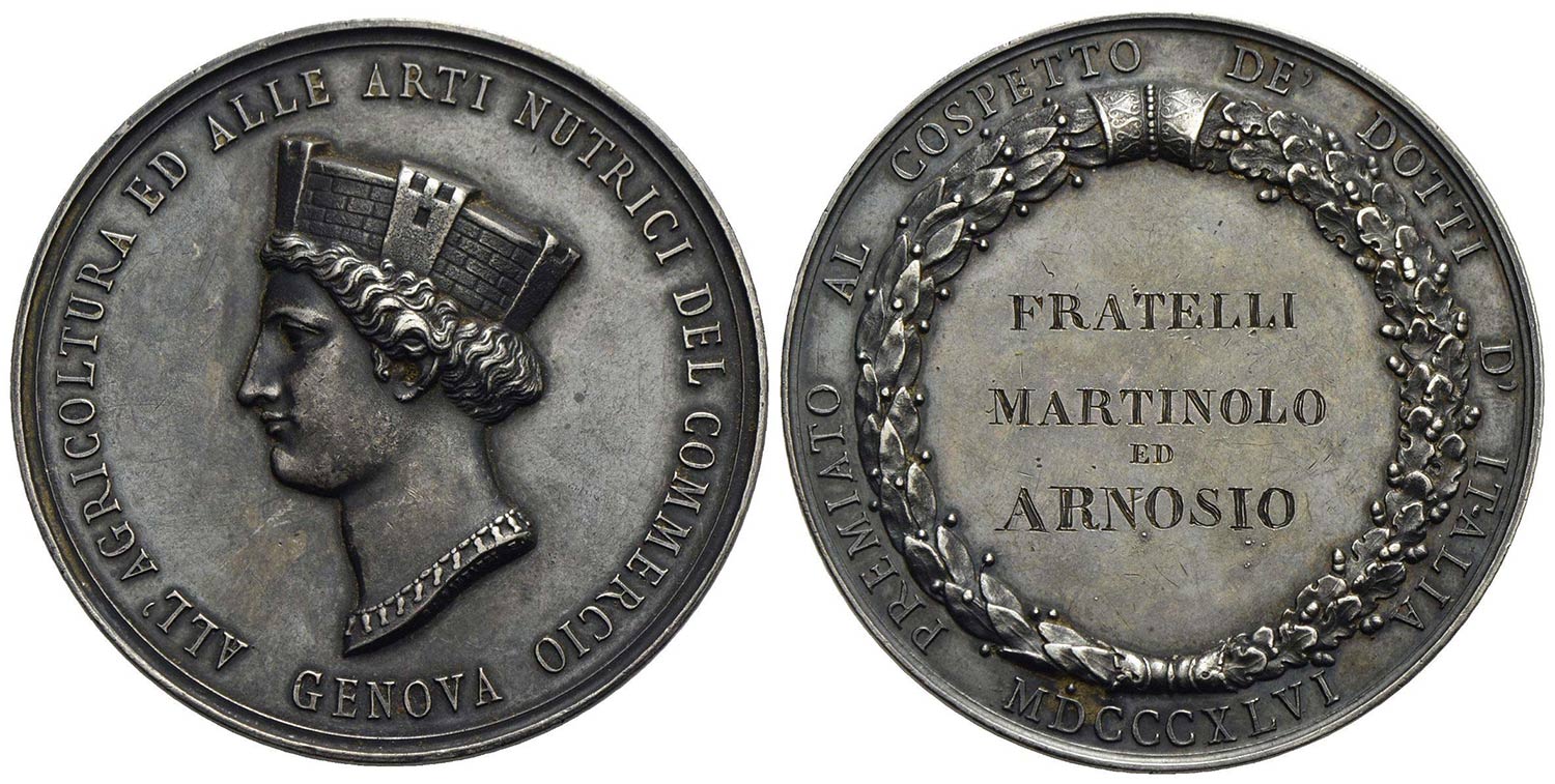 CITTA' - Genova - Medaglia - 1846 - All'Agricoltura ed alle Arti - Testa turrita a s. - R/ Scritta O