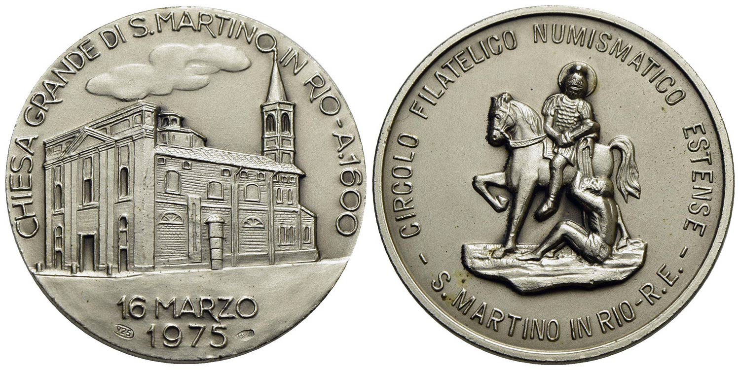 CITTA' - Reggio Emilia - Medaglia - S.Martino in Rio - Circolo Filatelico Numismatico Estense - Chiesa grande di San Martino in Rio - R/ San Martino Ø: 37 mm. - (AG g. 25,7)