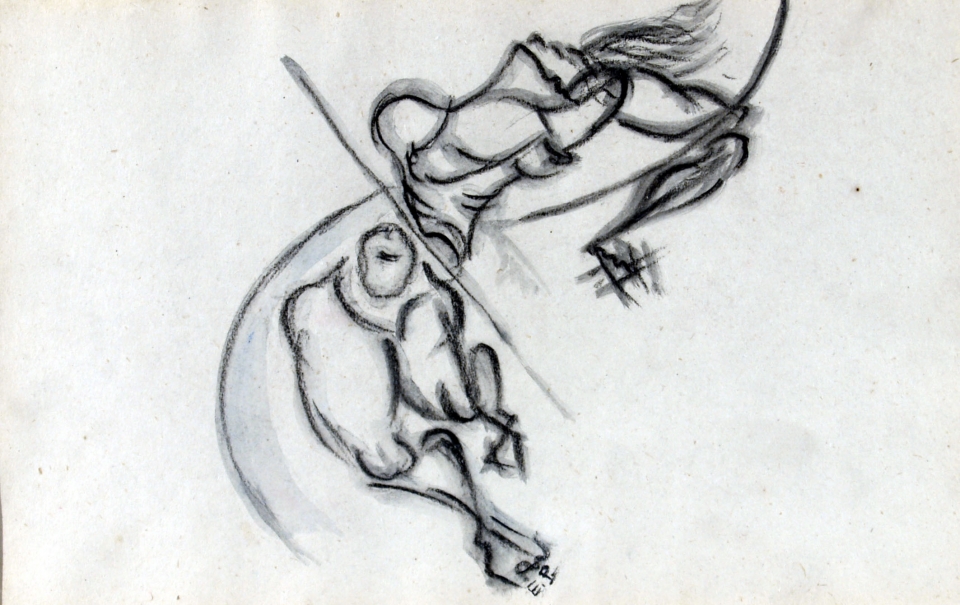 Sigla in basso al centro. Pubblicato su "Enrico Prampolini" Taccuini inediti 1942-1956. Verbale di perizia su foto rilasciato dalla Galleria Pace a firma di Gimmi Stefanini, perito d'arte del Tribunale di Milano e della Procura della Repubblica Svizzera, Lugano.