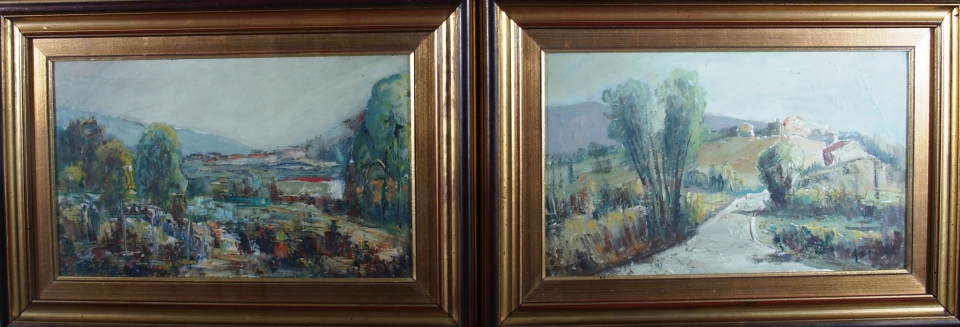 OPPICI ALDO A-B) "Paesaggio"" A-B) Olio su cartone telato cm. H: 30.00 L:...