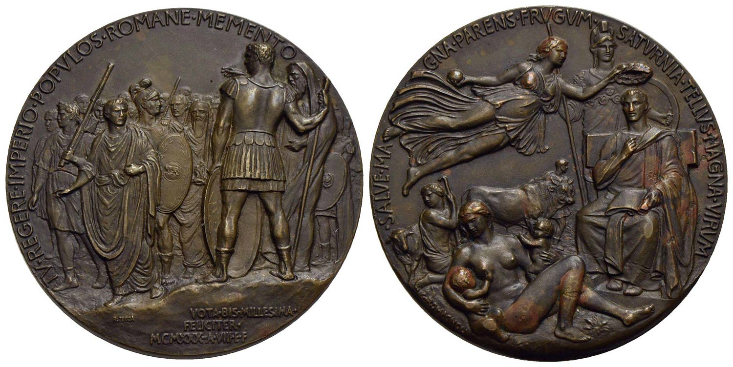 FASCISTE - Medaglia - 1930 A. VIII - Bimillenario per la morte di Virgilio - Virgilio seduto in trono coronato da angelo in volo - R/ Anchise velato Opus: Romagnoli Ø: 50 mm. - (AE g. 61,8) R Cas. VIII/85