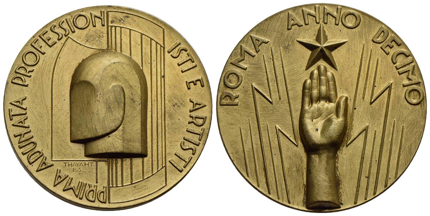 FASCISTE - Medaglia - 1932 A. X - Adunata Professionisti e Artisti - Testa di Mussolini stilizzata s