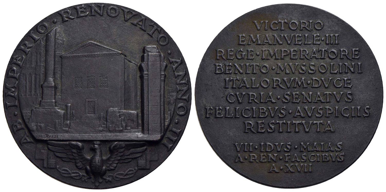 FASCISTE - Medaglia - 1939 A. XVII - Il Senato del Regno - Monumenti e sotto aquila - R/ Scritte Opu