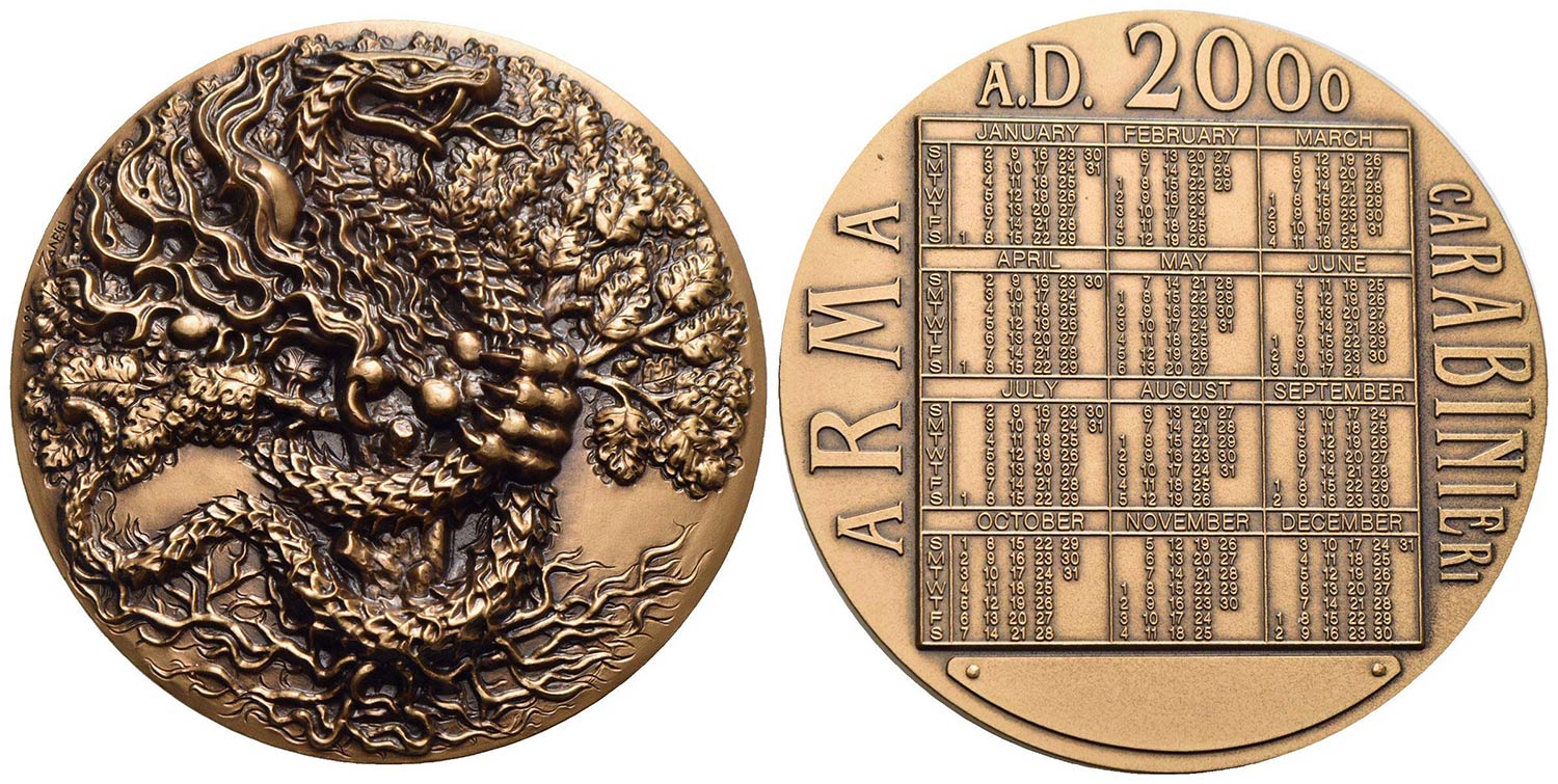 VARIE - Medaglia - CARABINIERI - Calendario anno 2000 - Lotta tra il bene e il male - R/ Clendario a