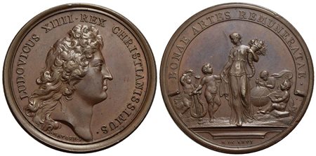 FRANCIA - Luigi XIV (1643-1715) - Medaglia - 1666 - Gratificazioni concesse a uomini di lettere - Busto a d. - R/ La Liberalità Opus: Mauger Ø: 41 mm. - (AE g. 27,5) Divo 87 Segnetto