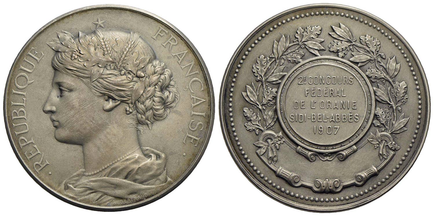 FRANCIA - Terza Repubblica (1870-1940) - Medaglia - 1907 - 2° concours federal de l'Oraine Sidi Bel Abbès Opus: Beetrand Ø: 50 mm. - (MA g. 55,4) In scatola originale