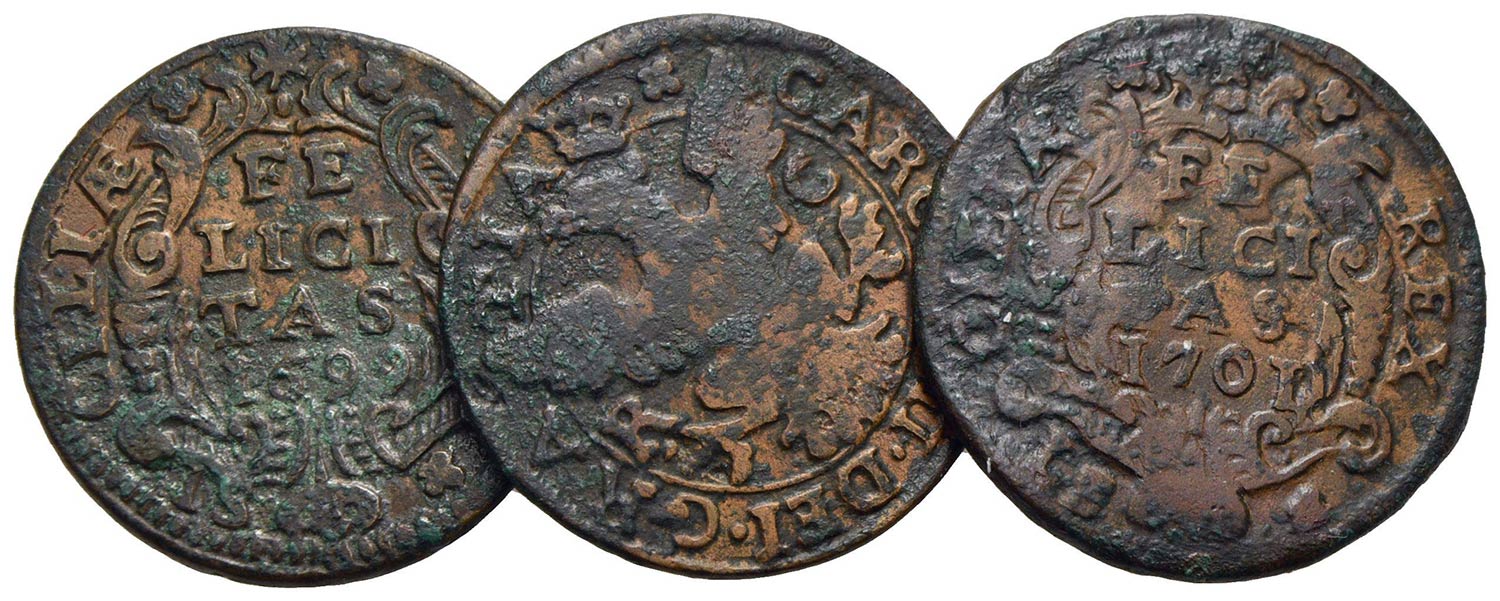 Zecche Italiane - PALERMO - grano 1699-1700-1701 - Lotto di tre monete<br>Varie