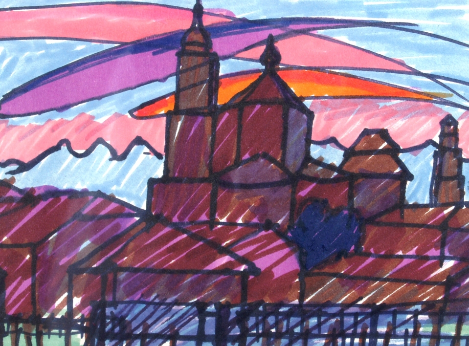 SALVO (Leonforte 1947) "Paesaggio" Pennarello su cartoncino cm. H: 16.00 L:...