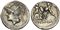 Q. Minucius Thermus M. f., Denarius, Rome, 103 BC. AR (g 3,94; mm 19; h 1). Helmeted bust of Mars l., Rv. Two warriors in combat, one on l. protecting a fallen man; Q•(THE)RM•(MF) in exergue. Crawford 319/1; Minucia 19; Sydenham 5