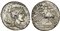 A. Albinus Sp.f., Denarius, Rome, 96 BC. AR (g 3,88; mm 19; h 1). Bust of Diana r.; bow and quiver over shoulder; ROMA below, Rv. Three horsemen galloping l.; fallen warrior before; A•ALBINVS•S•F in exergue. Crawford 335/9; Postum