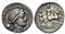 L. Farsuleius Mensor, Denarius, Rome, 76 BC. AR (g 3,85; mm 18,5; h 7). Diademed and draped bust of Libertas r.; control mark and pileus behind, MENSOR before, S•C below chin. R/ Roma in biga r., assisting togate figure into chari