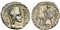 Lot 886 | Mn. Aquillius Mn. f. Mn. n., Serrate Denarius, Rome, 71 BC. AR (g 3,94; mm 20; h 6). Helmeted bust of Virtus r.; IIIVIR behind, VIRTVS before, Rv. The consul Manius Aquillius standing facing, holding shield and raising slumped Sic