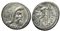 C. Vibius C.f. C.n. Pansa Caetronianus, Denarius, Rome, 48 BC. AR (g 3,84; mm 18; h 9). Mask of Pan r.; PANSA below, Rv. Jupiter Axurus seated l., holding patera and sceptre; C•VIBIVS•C•F•C•N to r., IOVIS AXVR to l. Crawford 449/1a; Vibia 18; Sydenham 947. Good very fine