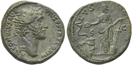 Antoninus Pius (138-161), Dupondius, Rome, ca. 141-3. AE (g 14,01; mm 27; h 12). ANTONINVS AVG PIVS P P TR P COS III, Radiate head r., Rv. SALVS AVG, Salus standing l., feeding serpent rising from altar and holding rudder on globe