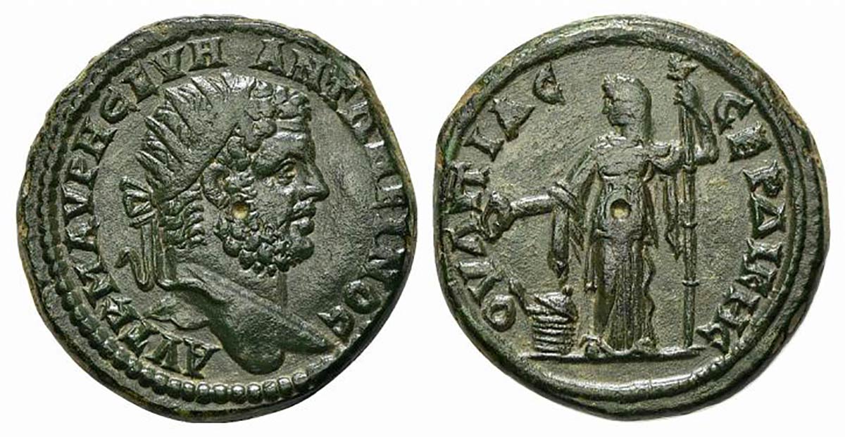 Caracalla (198-217). Thrace, Serdica. AE (g 20,25; mm 30; h 12). AVT K M AVPH CEVH ANTΩNEINOC, Radiate head r.; Rv. OVΛΠIAC CEPΔIKHC, Demeter standing facing, head l., holding patera and long torch; on l., cista mystica. Varbanov