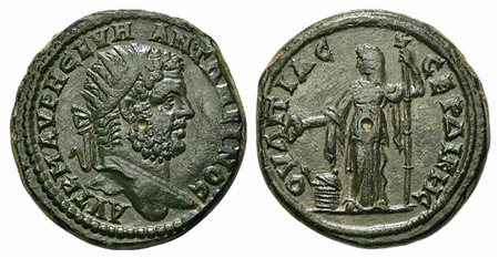 Caracalla (198-217). Thrace, Serdica. AE (g 20,25; mm 30; h 12). AVT K M AVPH CEVH ANTΩNEINOC, Radiate head r.; Rv. OVΛΠIAC CEPΔIKHC, Demeter standing facing, head l., holding patera and long torch; on l., cista mystica. Varbanov 2256. Good very fine